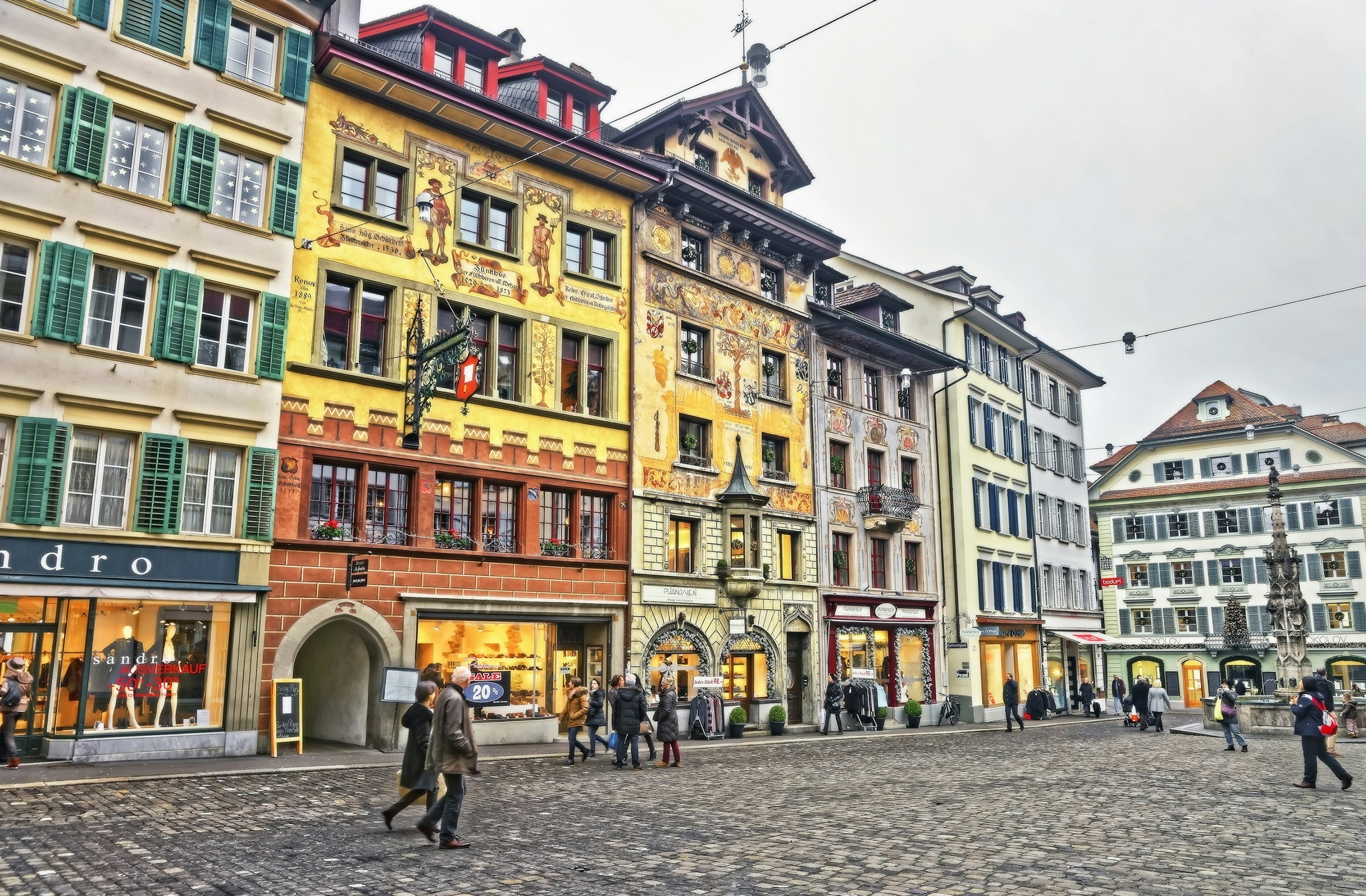 Lucerne’s gorgeous Altstadt (Old Town) is characterized by its beautifully decorated buildings, whose colorful frescos depict elements of the city’s history and culture, such as the annual Fasnacht (carnival), the legend of William Tell and historic battles. Take a stroll to admire the traditional guild house Pfistern building, the Hotel des Balances and the decorative buildings on Hirschenplatz, Weinmarkt and Mühlenplatz. Linger for longer in one of the many cafes dotted throughout the area.