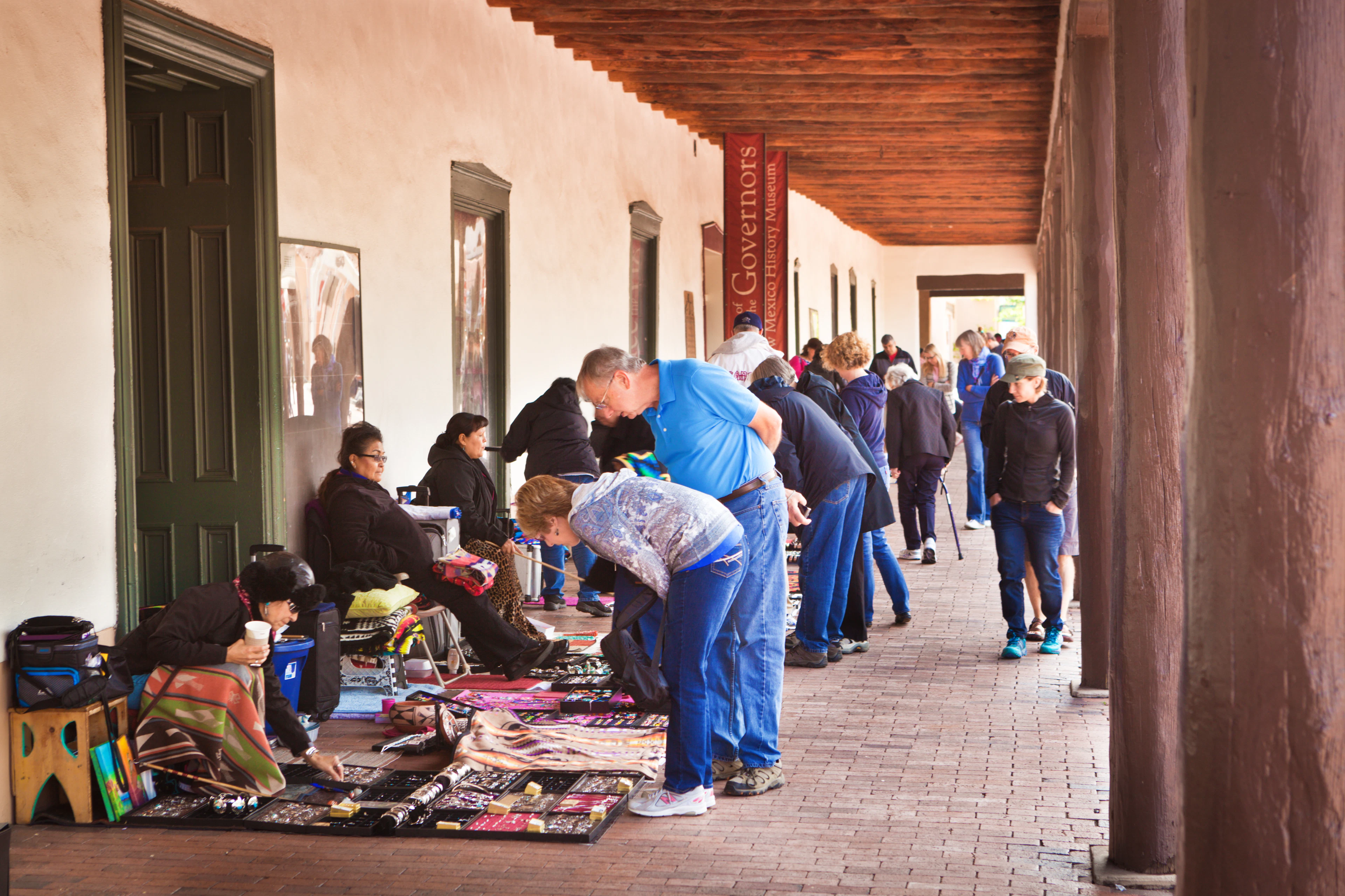 Under the covered walkway known as the portal along the south side of the Palace of the Governors, Native American artists representing 41 tribes, Pueblos, chapters and villages in New Mexico, the Navajo Nation and parts of Arizona sell handmade jewelry and art almost every day of the year.